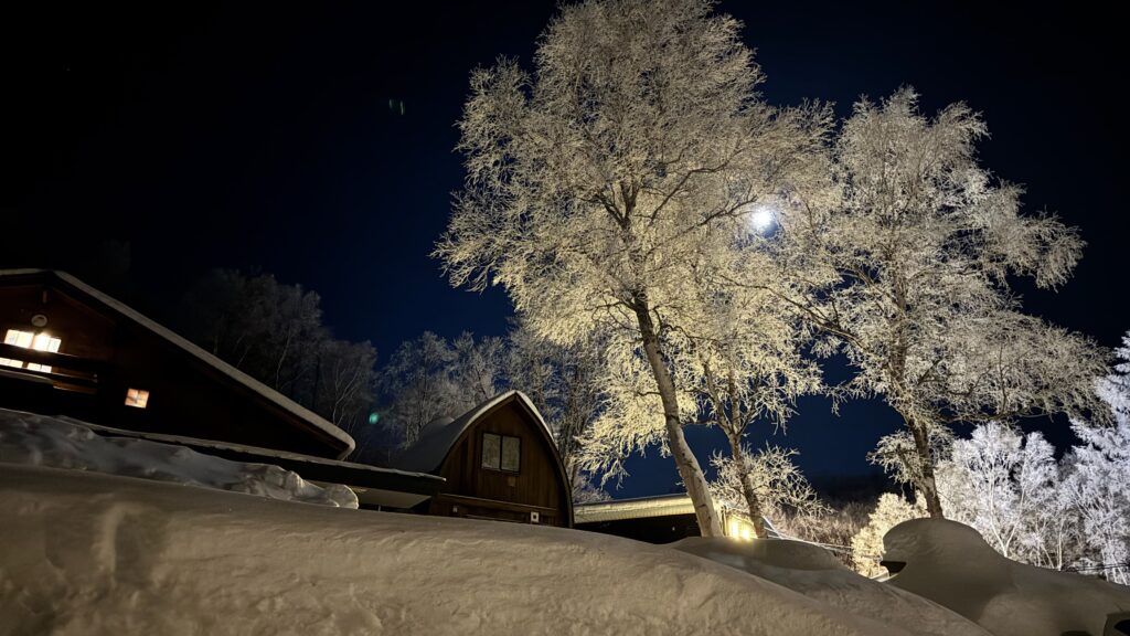 冬季キャンプの魅力は、何といっても静寂と星空です。峰の原高原は光害が少なく、月明かりや星々が雪面に反射し、夜には幻想的な景色が広がります。風が止むと、雪を吸い込むような静けさが訪れ、自然の中に身を置く感覚が際立ちます。朝方には気温が一気に下がり、霧氷やダイヤモンドダストが見られることもあり、厳しい環境だからこそ出会える美しい瞬間がここにはあります。