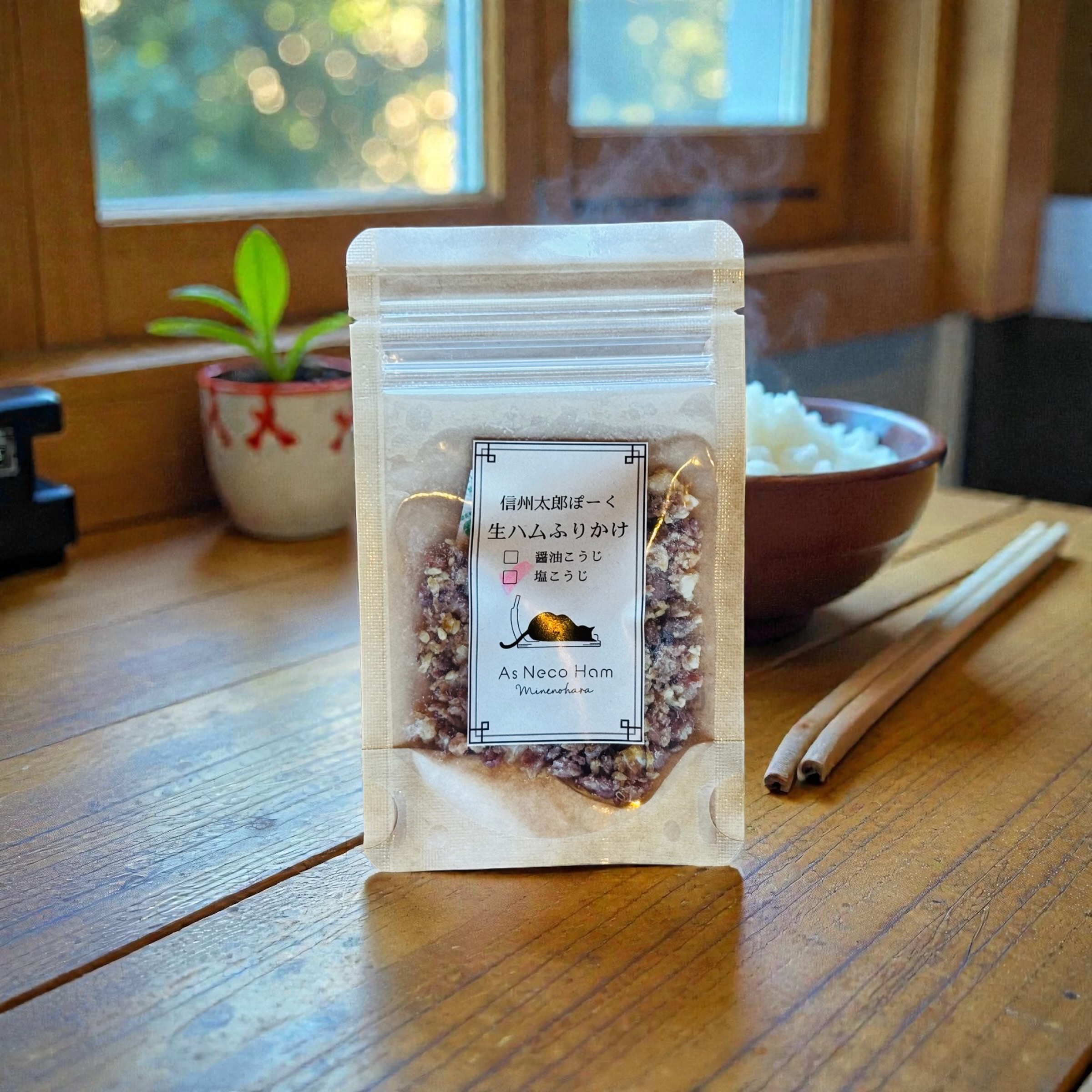 ふりかけ 生ハムふりかけ(塩こうじ) ¥540 信州太郎ぽーく生ハムの旨みを凝縮し、塩こうじで仕上げた、ごはんが進む贅沢ふりかけ。 在庫切れ お気に入りに追加お気に入りに追加済み 備考 重さ 30 g サイズ 15 × 9 × 1 cm レビュー レビュー投稿には、会員登録が必要です。会員登録する コメントをキャンセル 上に表示された文字を入力してください。 信州太郎ぽーくの生ハム端材を活用して、丁寧に乾燥・粉砕し、塩こうじと合わせて仕上げた生ハムふりかけです。 熟成肉ならではのコクと旨みに、こうじ由来のまろやかな甘みが加わり、シンプルながら奥行きのある味わいに。 温かいごはんはもちろん、卵かけごはんや冷奴、パスタやサラダの仕上げにもおすすめです。日常の食卓に、ひとふりで深みを添える新しい調味料としてお楽しみください。 関連商品 NEW ふりかけ 生ハムふりかけ(醤油こうじ) ¥540